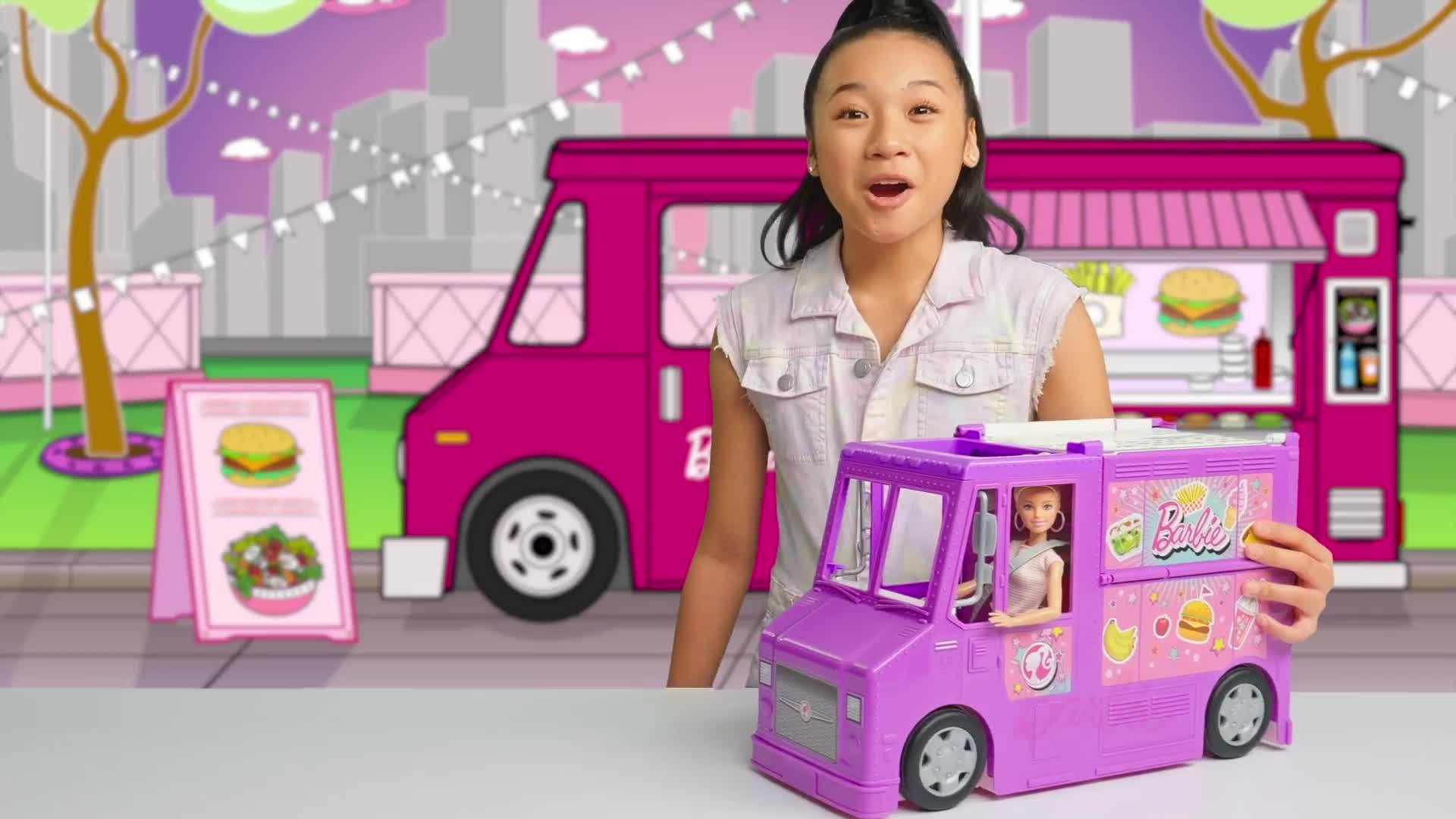 Barbie doll Skipper doll and Chelsea doll are serving up fun in their food truck and theyre bringing. This is a 43cm long vehicle with colourful Barbie graphics. The Barbie Food Truck is perfect for every little foodie with big dreams.